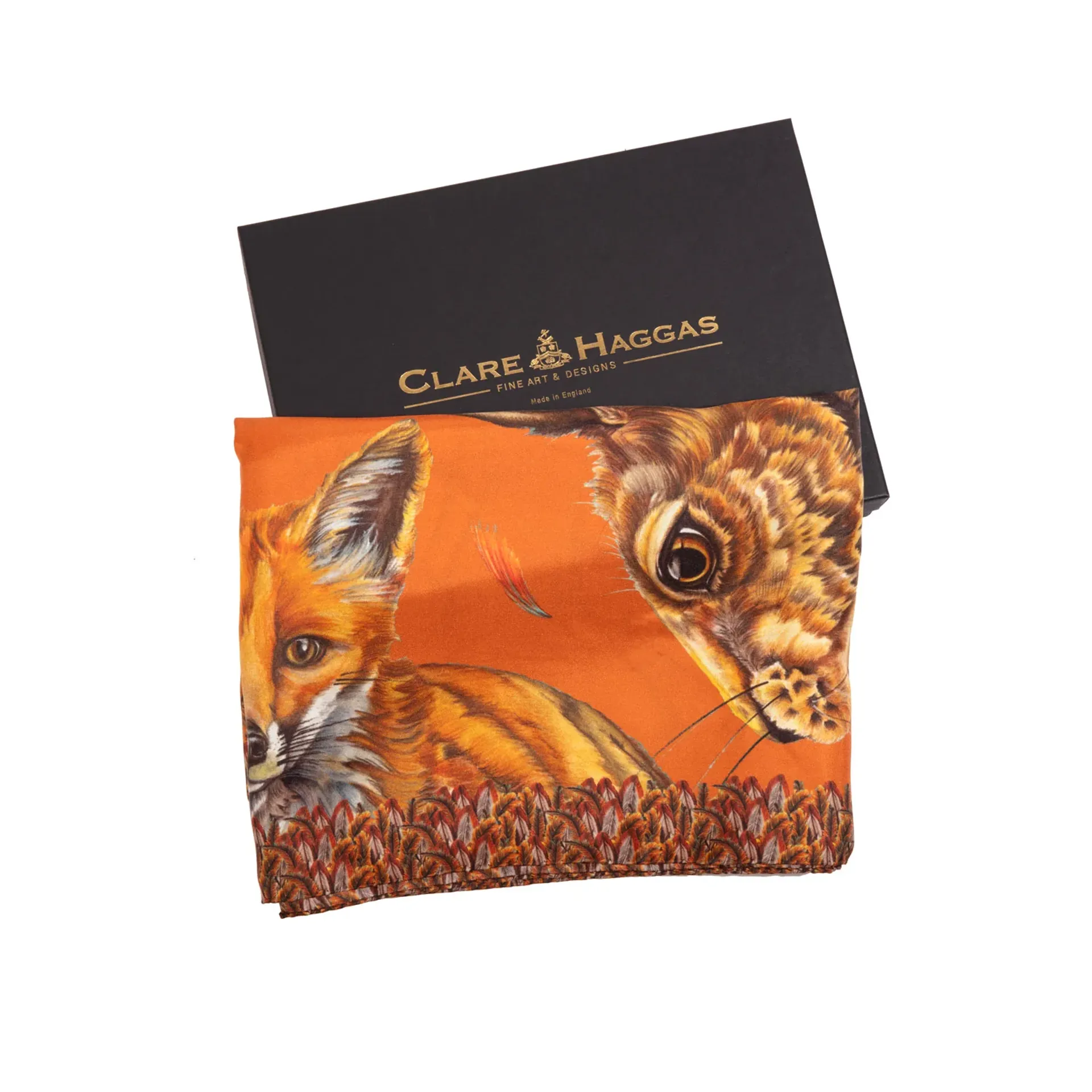 Pheasants, grey and French partridges, the majestic stag (“Caledonia”), hare, snipe, and feather accents all intermingle in this joyous collection. With a seasonal Burnt Orange colourway now available in the luxurious Classic Pure Silk Scarf, there's no better way to wrap yourself in Autumnal hues.