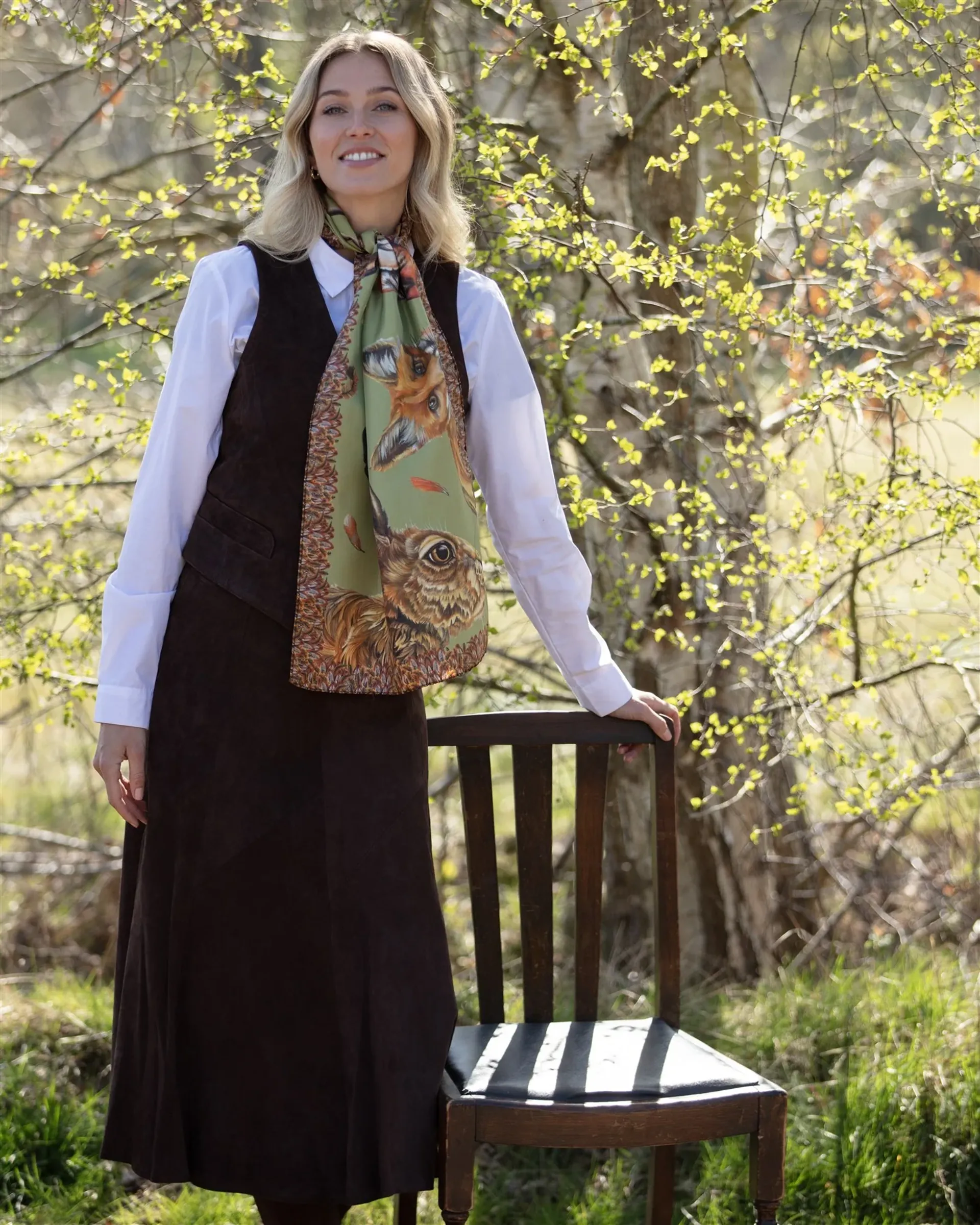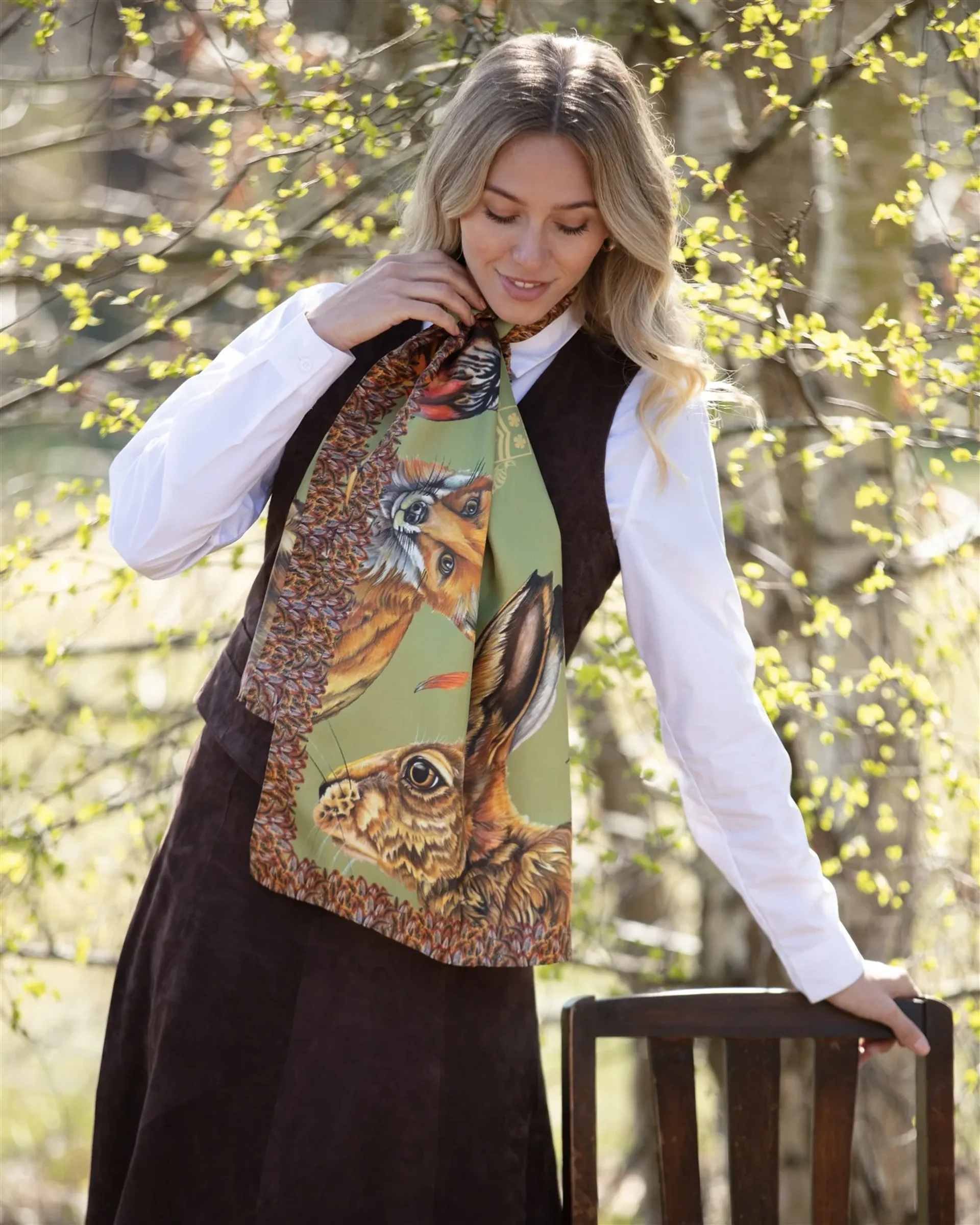 Pheasants, grey and French partridges, the majestic stag (“Caledonia”), hare, snipe, and feather accents all intermingle in this joyous collection. With an earthy Fern Green colourway now available in the luxurious Classic Pure Silk Scarf, there's no better way to wrap yourself in Autumnal hues.