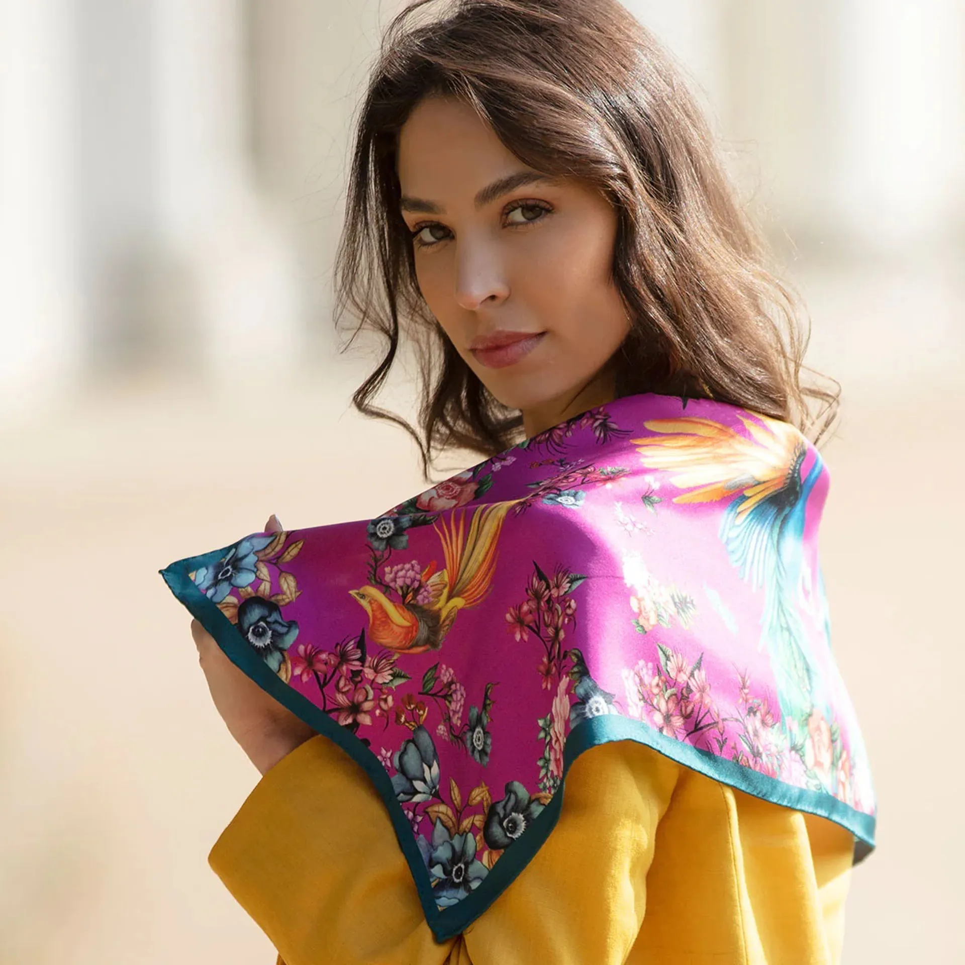 A fabulous fine natural fabric, made in England, this silk scarf is an additional everyone needs in their wardrobe. Silk is a very porous fabric so please do not the wrap to severe elements, or wear in wet hair. Dry clean only. Each of Clare’s products come lovingly wrapped in its own Bespoke box, and accompanied with a signed and numbered certificate.