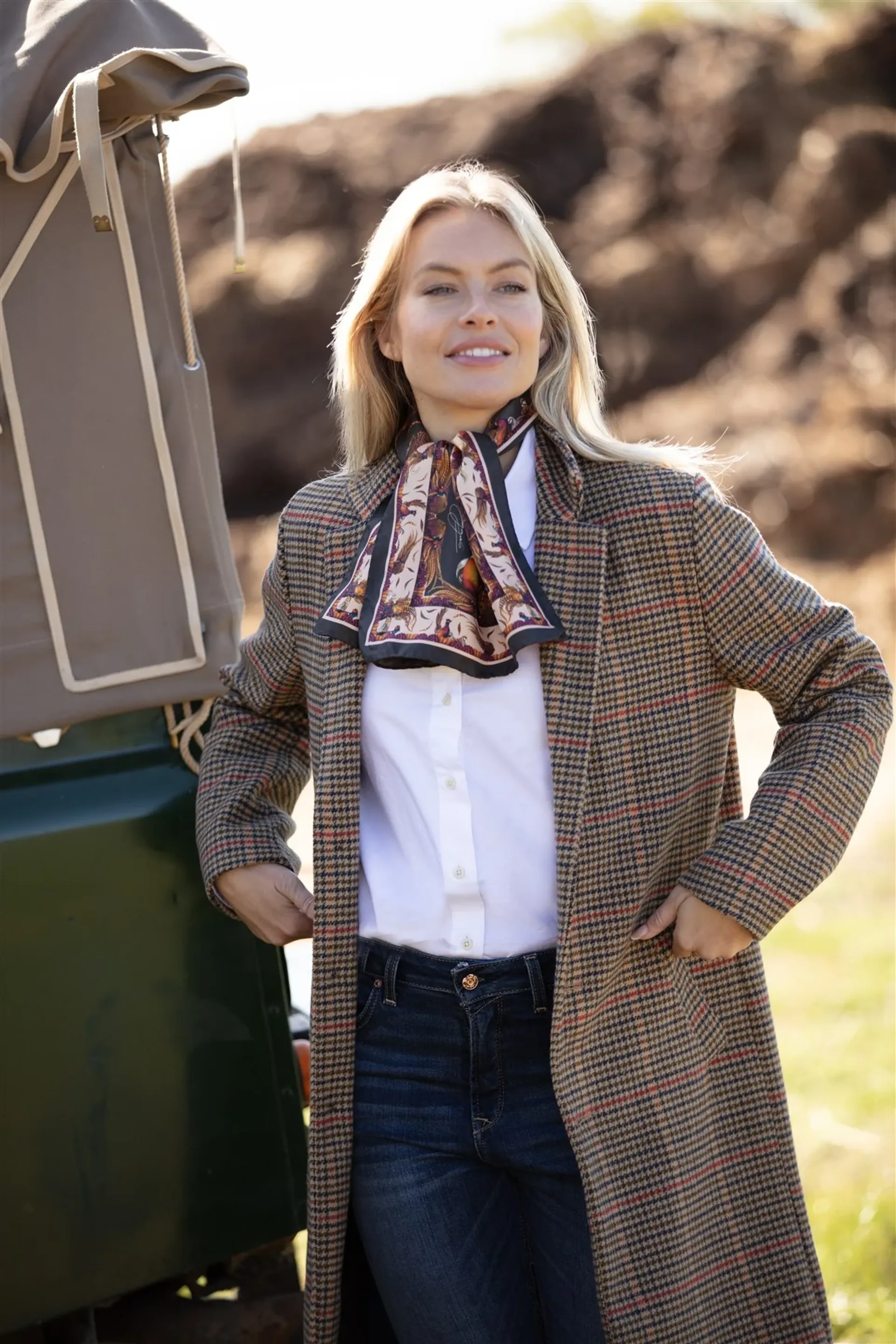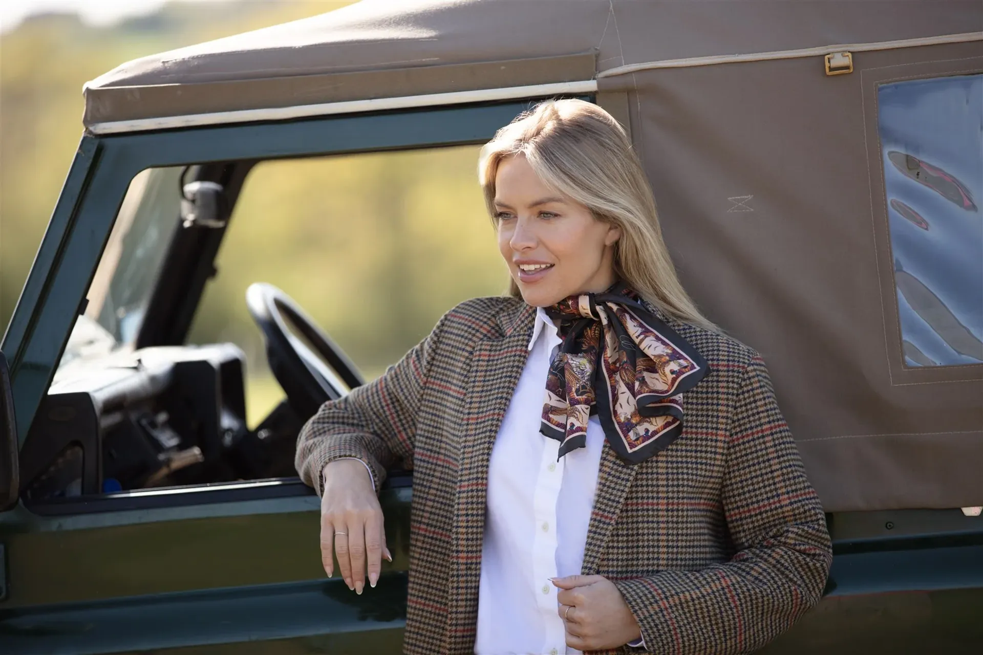 The beloved George & Friends design returns for Autumn/Winter 2025 from Clare Haggas, reimagined in rich, seasonal tones that propel this countryside classic into a bold statement piece for the cooler months. With an alluring Charcoal colourway now available in the Narrow Silk size, this release brings a new depth of colour and character to one of Clare Haggas’ most cherished creations.