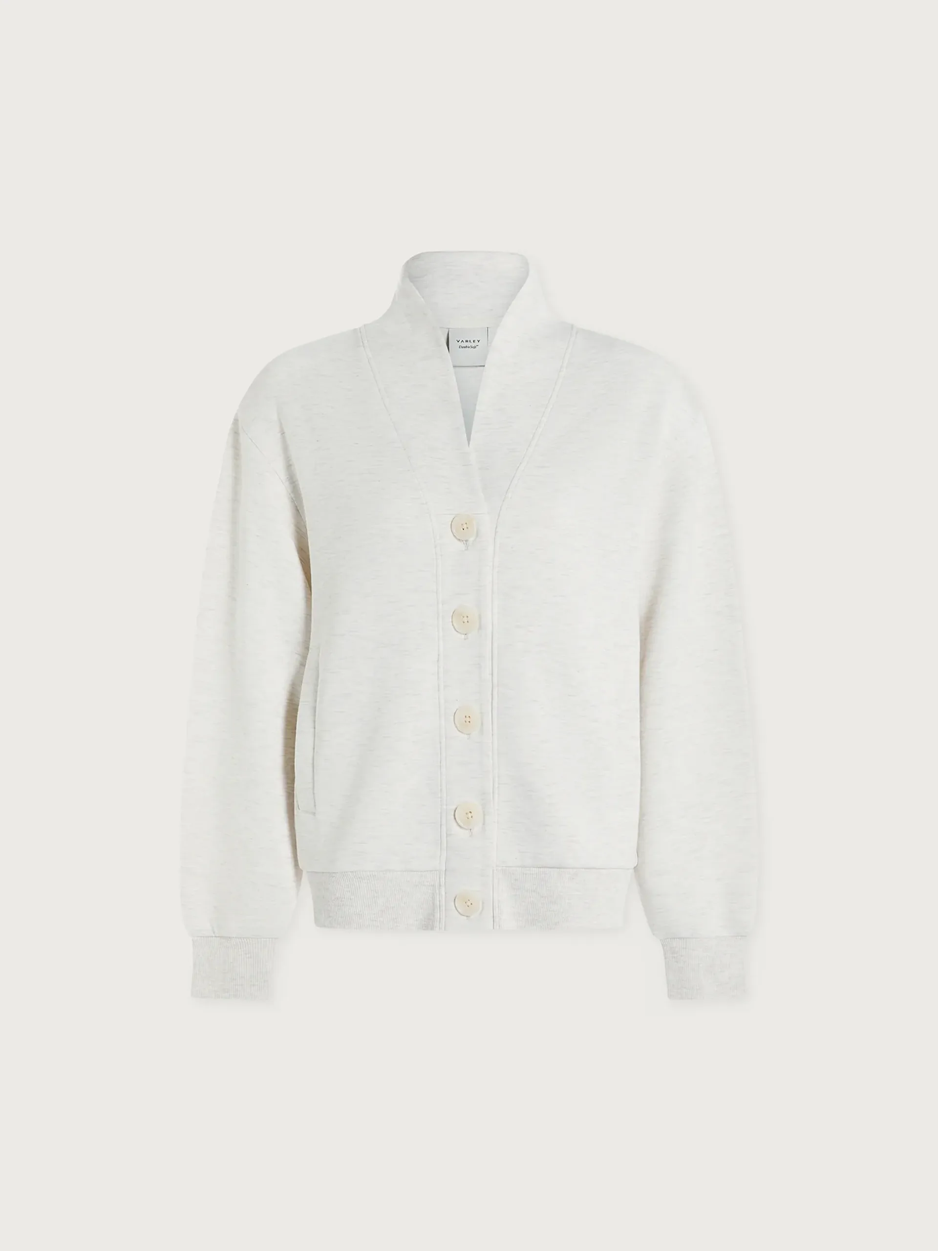 Made from Varley's signature DoubleSoft® fabric, this cardigan-style sweatshirt is cut to a relaxed fit with dropped shoulders, a modern V-neckline, and tonal buttons to the center front.